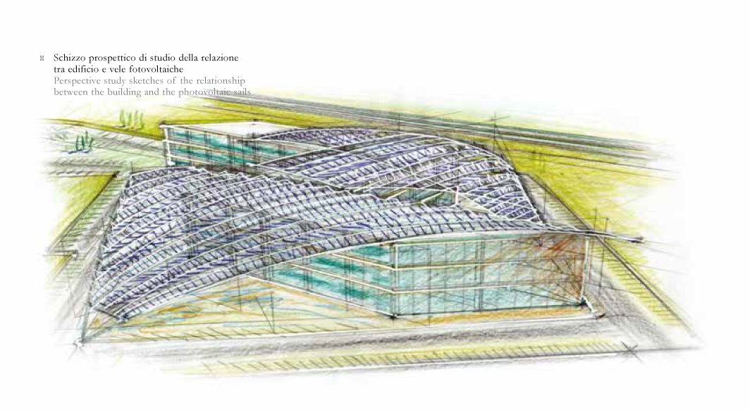 "La leggerezza del concept non intacca la resistenza delle due strutture destinate ad accogliere i pannelli fotovoltaici, ne esalta la forza architettonica e tecnologica. "