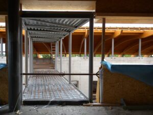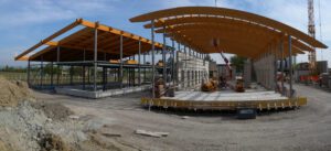 Promo ha realizzato o gestito tutte le opere fuori terra, fatta eccezione per alcuni setti in cemento armato dello showroom. Le strutture portanti metalliche sono state completate da travi e pacchetto di copertura ventilato in legno. Anche i tamponamenti di parete sono stati realizzati con pannelli sandwich in legno, prefabbricati in officina e assemblati in opera. Promo si è occupata anche di tutti i tamponamenti vetrati, di scale esterne, passerelle, frangisole e una parete realizzata con bottiglie.